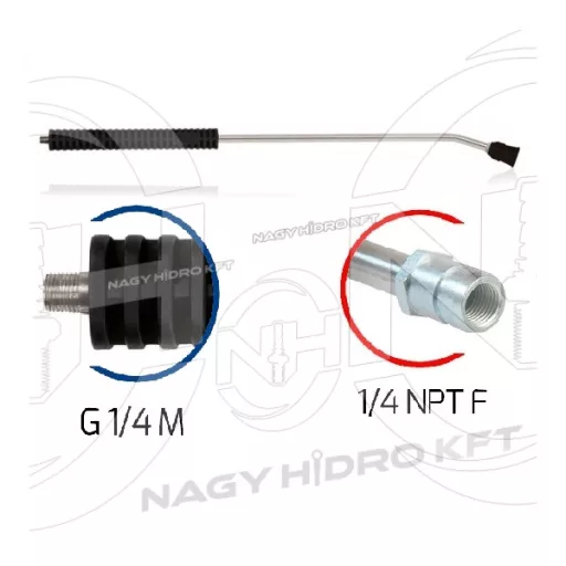 1/4" 1200mm HAJLÍTOTT MOSÓPISZTOLY SZÁR / LÁNDZSA, MŰANYAG MARKOLATTAL ÉS FÚVÓKA VÉDŐVEL (INOX / ROZSDAMENTES)